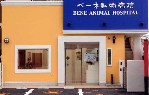 病院正面出入口です。自動ドアを入って右側が受付です。
